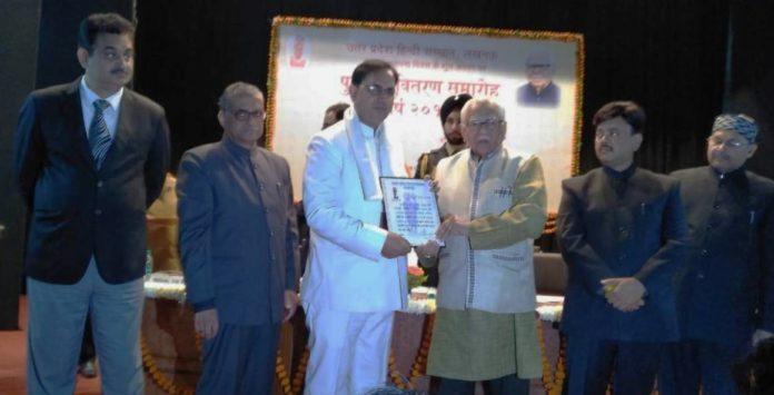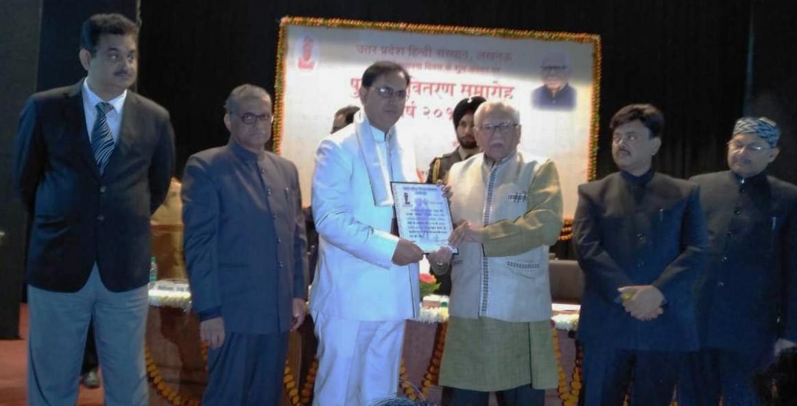 30 दिसंबर 18, लखनऊ, गत 10 वर्षो से नियमित साहित्यिक त्रैमासिक “अभिनव प्रयास ” का संपादन/ प्रकाशन करने के लिए कवि अशोक अंजुम को उत्तर प्रदेश हिंदी संस्थान का धर्मयुग पुरस्कार प्रदान किया गया ! यह पुरस्कार संस्थान के लखनऊ स्थित यशपाल सभागार में भव्य समारोह के अंतर्गत उत्तर प्रदेश के राज्यपाल महामहिम राम नाईक ने प्रदान किया ! पुरस्कार के अंतर्गत अंगवस्त्र, प्रमाण पत्र और चालीस हज़ार की राशि प्रदान की गयी ! इस अवसर पर संस्थान के निदेशक श्री शिशिर और कार्यकारी अध्यक्ष श्री सदानन्द प्रसाद गुप्त भी मंच पर उपस्थित रहे ! कार्यक्रम का संचालन डॉ अमिता दुबे ने किया !