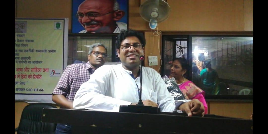 आज 2 अक्टूबर, 2018 को गाँधी जी की 150वीं जयंती के अवसर पर केंद्रीय हिंदी निदेशालय एवं वैज्ञानिक तथा तकनीकी शब्दावली आयोग और हिंदुस्तानी भाषा अकादमी के तत्वावधान में ‘गाँधी के भाषा चिंतन में हिंदी ‘ विषय पर विचार संगोष्ठी एवं सरस काव्योत्सव का आयोजन किया गया जिसमें दिल्ली, एन सी आर के विभिन्न विद्यालयों के लगभग 125 हिंदी शिक्षक भी आमंत्रित थे। स्थान था- केंद्रीय हिंदी निदेशालय।कार्यक्रम की अध्यक्षता प्रो अवनीश कुमार, अध्यक्ष, केंद्रीय हिंदी निदेशालय, मुख्य अतिथि भाषाविद् और केंद्रीय हिंदी समिति के सदस्य प्रो. कृष्णकुमार गोस्वामी थे। कार्यक्रम का संयोजन एवम् संचालन हिंदुस्तानी भाषा अकादमी के अध्यक्ष श्री सुधाकर पाठक किया गया । स्रोत वक्ताओं में प्रो. डॉ रमेश तिवारी, डॉ धनेश द्विवेदी, डॉ हरीश अरोड़ा, डॉ राकेश पांडेय, डॉ बी. एल. गौड़ थे। इस अवसर पर सरोज शर्मा, सविता चड्ढा, मुक्ता, हामिद खान, मंजीत कौर, विजय कुमार, विजय शर्मा, राजकुमार श्रेष्ठ, नरेंद्र सिंह निहार, डॉ. भावना शुक्ल, सरिता गुप्ता आदि साहित्यकार के साथ ही कथाकार सन्दीप तोमर भी उपस्थित थे।