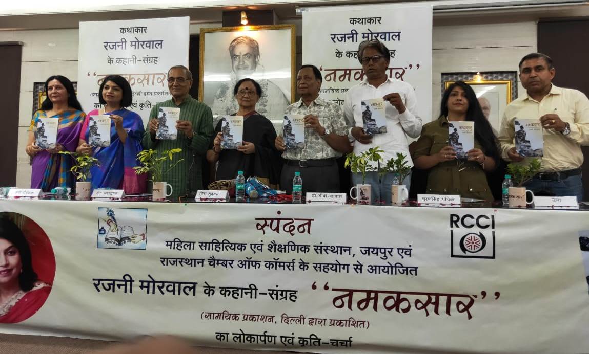 दिनांक 08 सितंबर 2019 को ‘स्पंदन’ संस्थान, जयपुर के तत्वाधान से रजनी मोरवाल के सामयिक प्रकाशन, दिल्ली द्वारा प्रकाशित कहानी-संग्रह “नमकसार” का लोकार्पण एवं कृति-चर्चा का आयोजन किया गया जिसमें प्रख्यात उपन्यासकर चित्रा मुद्गल ने लोकार्पण करते हुए कहा कि रजनी मोरवाल की कहानियों में भाषा बहती है और फ़ार्मूला स्त्री-विमर्श को तोड़ती हुई कहानियाँ हैं जो सोचने को मजबूर करती हैं ।
