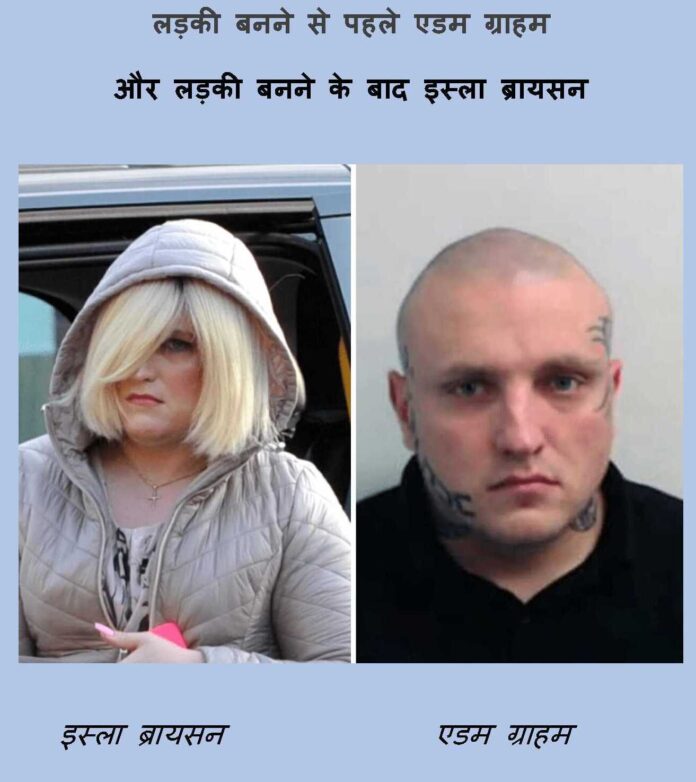एडम पर मुकद्दमा चला और 2023 में उसे 8 वर्ष की सज़ा सुनाई गई। मगर इस बीच एक ऐसी घटना घटित हो चुकी थी, जिसने सारा घटनाक्रम ही बदल दिया था। हुआ कुछ यूँ कि एडम ग्राहम ने इस बीच लिंग परिवर्तन कर लिया और अब उसने अपने आपको एक औरत घोषित कर दिया था। उसने अपना एक नया नाम भी रख लिया था – इसला ब्रायसन!