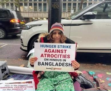 बांग्लादेश में 13 अक्टूबर को अल्पसंख्यक हिन्दुओं पर हुए हिंसात्मक हमलों के विरोध में लंदन के रेडब्रिज क्षेत्र के सेवन किंग्ज़ वार्ड की लेबर काउंसलर पुॉष्पिता गुप्ता ने बांग्लादेश उच्चायोग के सामने भूख-हड़ताल कर दी। उनकी भूख-हड़ताल पर बैठी एक फ़ोटो सोशल मीडिया में वायरल हो चुकी है। मगर न तो ब्रिटेन में और न ही भारत में इस समाचार को किसी प्रकार का कोई महत्व मिला है।