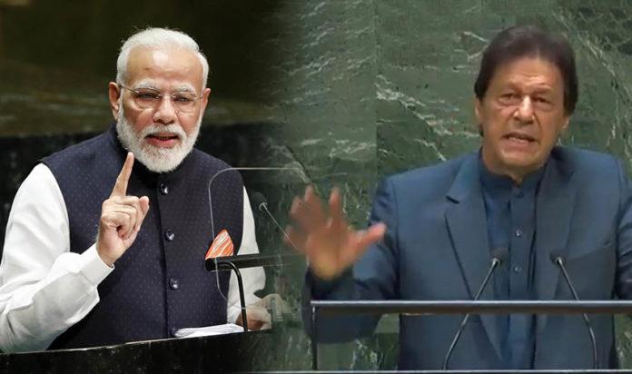 दूसरी तरफ़ पाकिस्तान के प्रधानमन्त्री इमरान ख़ान पिछले 5 अगस्त से एक ही भाषण दे रहे हैं। उनके पास एक ही मुद्दा है – कश्मीर और न्यूक्लियर बम्ब की धमकी। उनका जनरल असेम्बली का भाषण अधिक से अधिक नफ़रत फैलाने वाला भाषण कहा जा सकता है। उनके भाषण में नरसंहार, रक्तपात, नस्लीय श्रेष्ठता, बंदूक उठाएंगे और अंत तक लड़ेंगे जैसे शब्दों का जी भर कर इस्तेमाल किया गया।