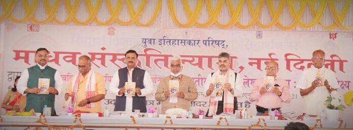 ‘भारतीय इतिहास लेखन परंपरा : नवीन परिप्रेक्ष्य’ विषय पर अपनी बात रखते हुये मुख्य अतिथि बेसिक शिक्षा मंत्री डॉ. सतीश चंद्र द्विवेदी ने कहा कि आजादी के बाद इतिहास संकलन का कार्य हो रहा है। देश को परम वैभव के शिखर पर ले जाने में युवा इतिहासकारों का संकलन कारगर साबित होगा। कार्यक्रम शुभारंभ के दौरान माखनलाल चतुर्वेदी राष्ट्रीय पत्रकारिता एवं संचार विश्वविद्यालय, नोएडा परिसर में सहायक प्राध्यापक डॉ. सौरभ मालवीय की लिखित पुस्तक भारत बोध समेत आठ अलग-अलग लेखकों की पुस्तकों का मंत्री व कुलपति द्वारा लोकार्पण किया गया।