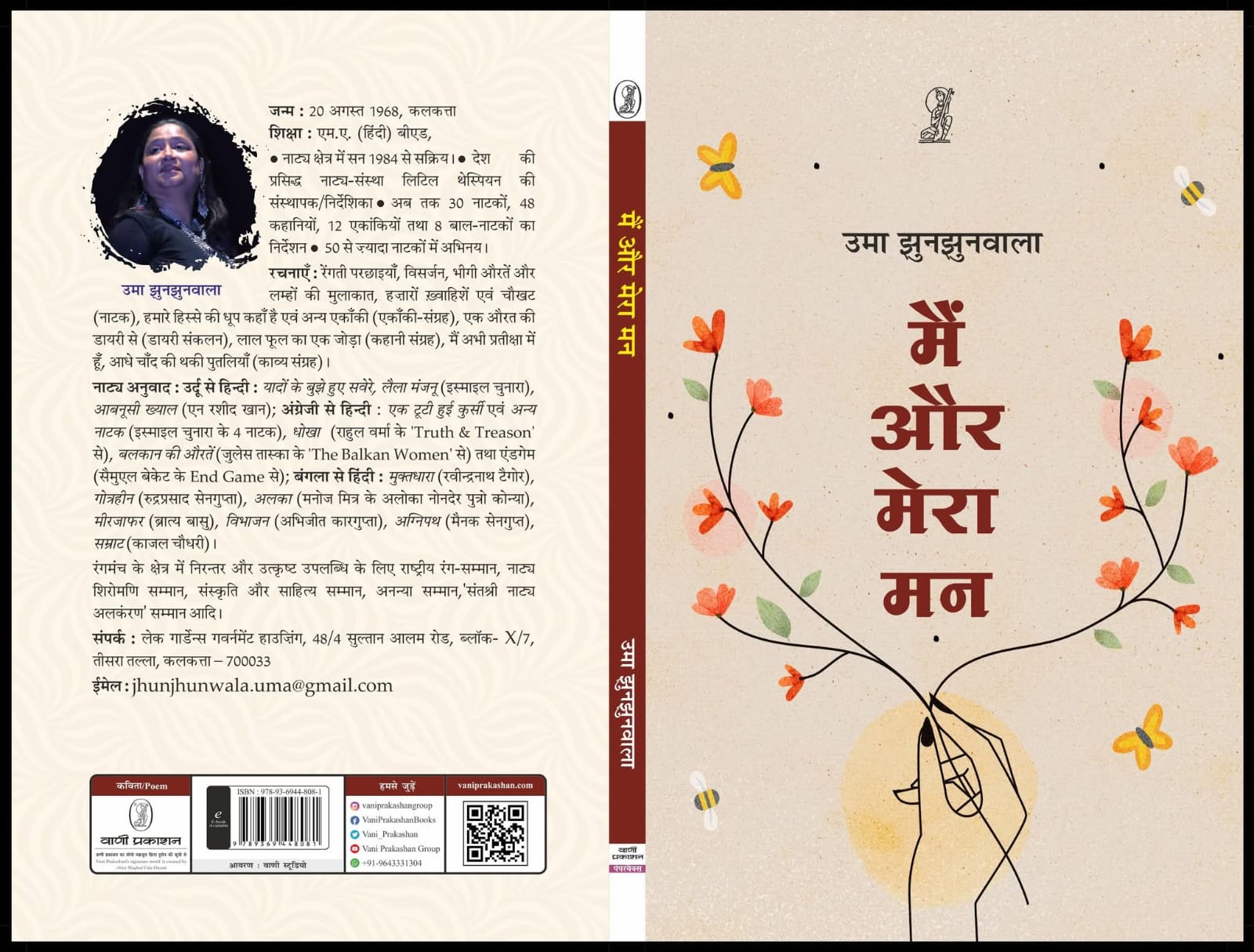 उमा झुनझुनवाला समकालीन हिन्दी काव्य और रंगमंच की उन विरल रचनाकारों में हैं, जिनकी रचना-संवेदना केवल अनुभव की पुनरावृत्ति नहीं बल्कि अनुभव के दार्शनिक पुनर्सृजन का कार्य करती है। 20 अगस्त 1968 को कोलकाता में जन्मी उमा ने अपने सृजनधर्मी व्यक्तित्व से हिन्दी साहित्य में एम.ए. तथा की बी.एड की शिक्षा प्राप्त की और 1984 से रंगमंच के क्षेत्र में सक्रिय रहकर ‘लिटिल थेस्पियन’ जैसी संस्था की स्थापना की। निर्देशन, अभिनय, लेखन और अनुवाद इन सभी क्षेत्रों में उनका योगदान उल्लेखनीय है। ‘रेंगती परछाइयाँ’, ‘विसर्जन’, ‘भीगी औरतें और लम्हों की मुलाकात’, ‘हज़ारों ख्वाहिशें’ तथा ‘चौखट’ जैसे नाटकों से लेकर ‘एक औरत की डायरी से’ और ‘लाल फूल का एक जोड़ा’, ‘मैं अभी प्रतीक्षा में हूँ’ तथा ‘आधे चाँद की थकी पुतलियाँ’ जैसे काव्य-संग्रहों तक उनका रचनात्मक विस्तार एक सघन संवेदनात्मक भूगोल निर्मित करता है। अब वाणी प्रकाशन, दिल्ली से प्रकाशित उनका काव्य-संग्रह “मैं और मेरा मन” में संकलित कविताएँ उनके काव्य-संसार को एक विशिष्ट वैचारिक ऊँचाई प्रदान करती हैं।