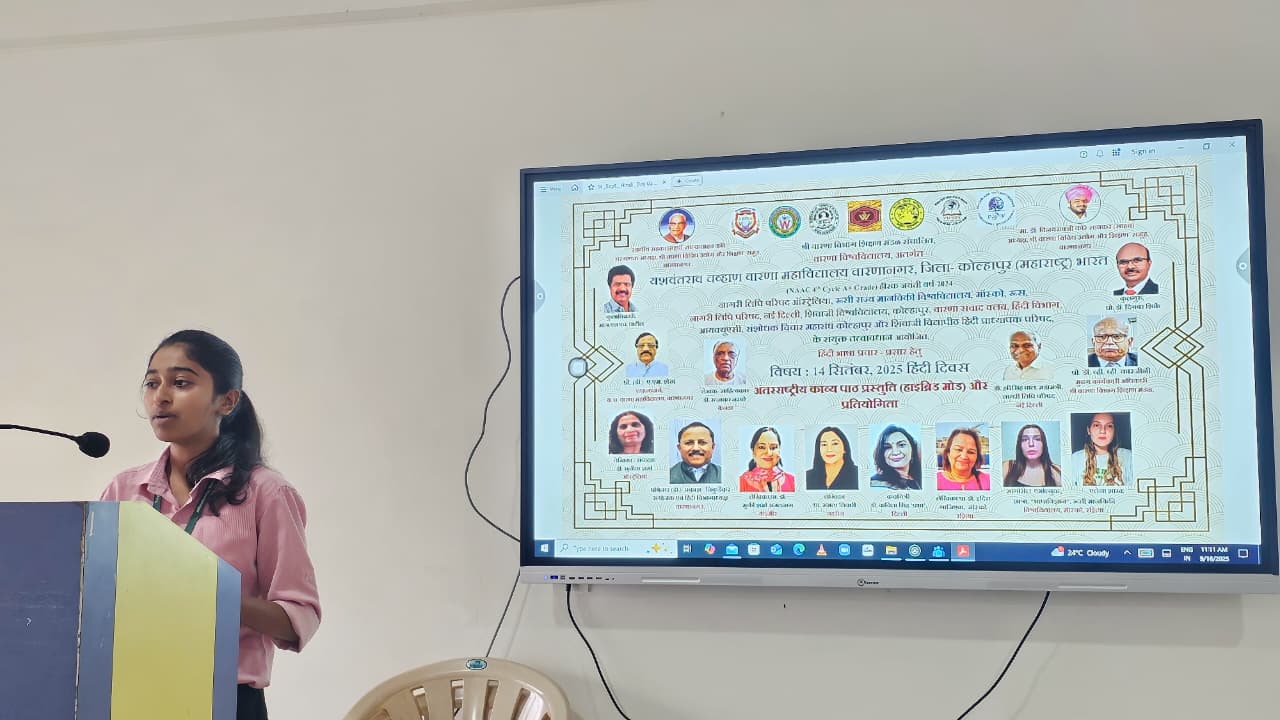 वारणानगर (कोल्हापुर- महाराष्ट्र) स्थित वारणा विश्वविद्यालय अंतर्गत यशवंतराव चव्हाण वारणा महाविद्यालय में वारणा संवाद क्लब एवं हिंदी विभाग के संयुक्त तत्वावधान में आयोजित अंतर विश्वविद्यालयीय अंतरराष्ट्रीय काव्य संमेलन एवं काव्यपाठ प्रतियोगिता में देश-विदेश के सौ से अधिक लेखक, कवि, साहित्यकार और विद्यार्थी -विद्यार्थियों ने उत्साहपूर्वक सहभागिता की।