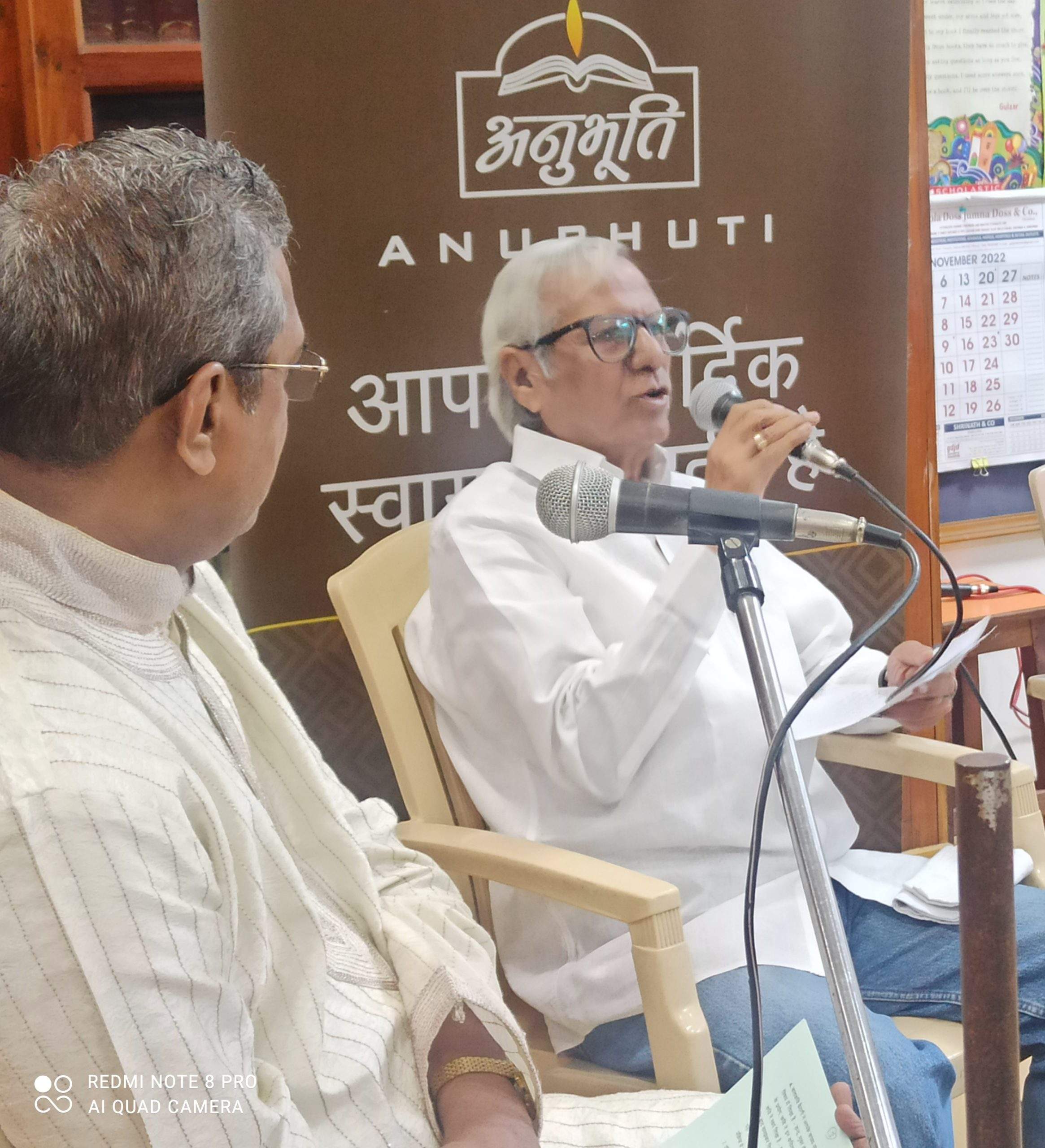 इस अवसर पर ‘संवेदना ‘विषय पर आयोजित अनुभूति की मासिक काव्य गोष्ठी में रचनाएं सुनाने वाले कवि थे ज्ञान जैन, गोविंद मूंदड़ा, सुधा त्रिवेदी,नीलम सारडा, मंजू रुस्तगी, नीलावती मेघानी , अरुणा मुनोथ, गौतम डी जैन और कुमारकांत ने अपनी रचनाएं सुनाई।