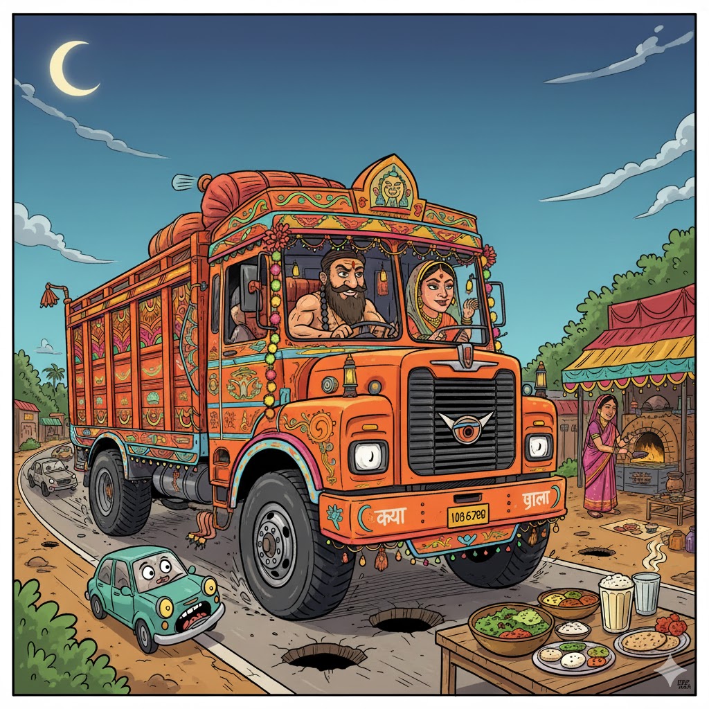 ट्रक केवल माल नहीं ढोते, वे संस्कृति, भाषा और क्षेत्रीय पहचान के संवाहक हैं। पंजाब का ड्राइवर जब बंगाल पहुँचता है, तो उसके लाउडस्पीकर पर बजता “शीला की जवानी” या “फेविकोल से” किसी राष्ट्रीय एकता के गीत जैसा लुत्फ़ देता है। ढाबों की थाली में परोसी जाती है विविधता की असली थाली—कहीं सरसों का साग, कहीं इडली, कहीं लस्सी, और साथ में गालियों की बोली जो हर राज्य की अपनी लय लिए होती है। यही है भारत की अनौपचारिक सांस्कृतिक नीति—“ट्रक टू ट्रक डिप्लोमेसी।”